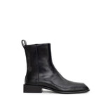 Botines de piel negros Throttle Alexander Wang. Botines de piel negra, puntera cuadrada, cierre con cremallera lateral oculta, tirador trasero de piel, tacón cuadrado de madera con placa metálica del logotipo, tacón parcialmente engomado.