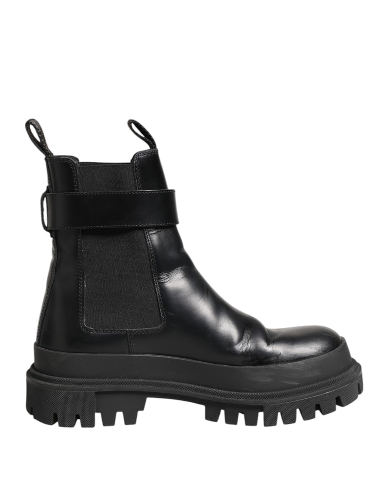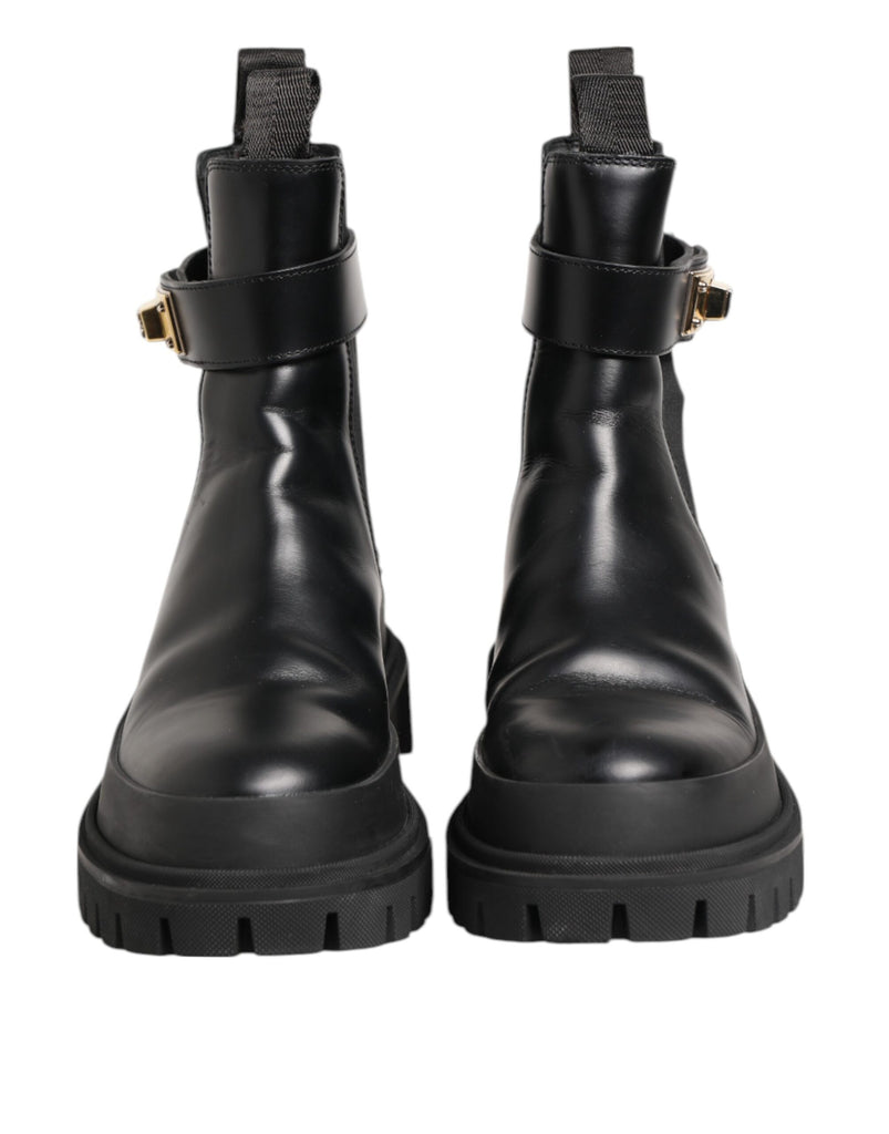 Gorgeous brand new, 100% Authentic Dolce & Gabbana shoes feature a sleek black calfskin leather design with a bold DG logo strap detail. These ankle boots combine luxury craftsmanship with edgy elegance, offering a refined silhouette, sturdy sole, and secure strap closure. Perfect for elevating both casual and dressy looks with signature designer flair.