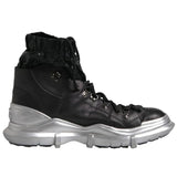 Discover the epitome of modern luxury with these Dolce & Gabbana ankle boots, crafted from the finest lambskin and nylon. Make a bold statement with the sleek black leather upper contrasted by a silver rubber sole for unmatched style and durability. The inner knee-high nylon acts as an elastic sock, ensuring comfort and an avant-garde edge. Designed in Italy, these boots redefine sophistication with their exceptional craftsmanship. Perfect for style connoisseurs who dare to stand out.