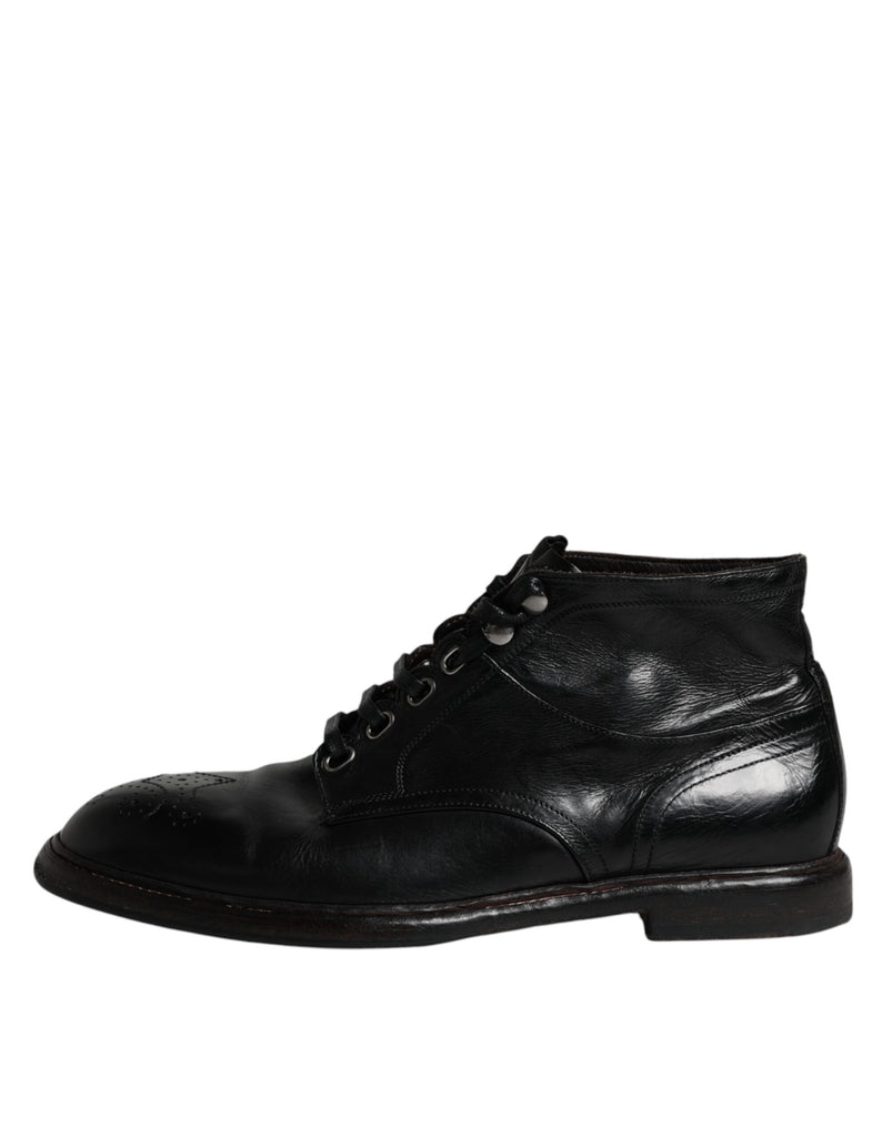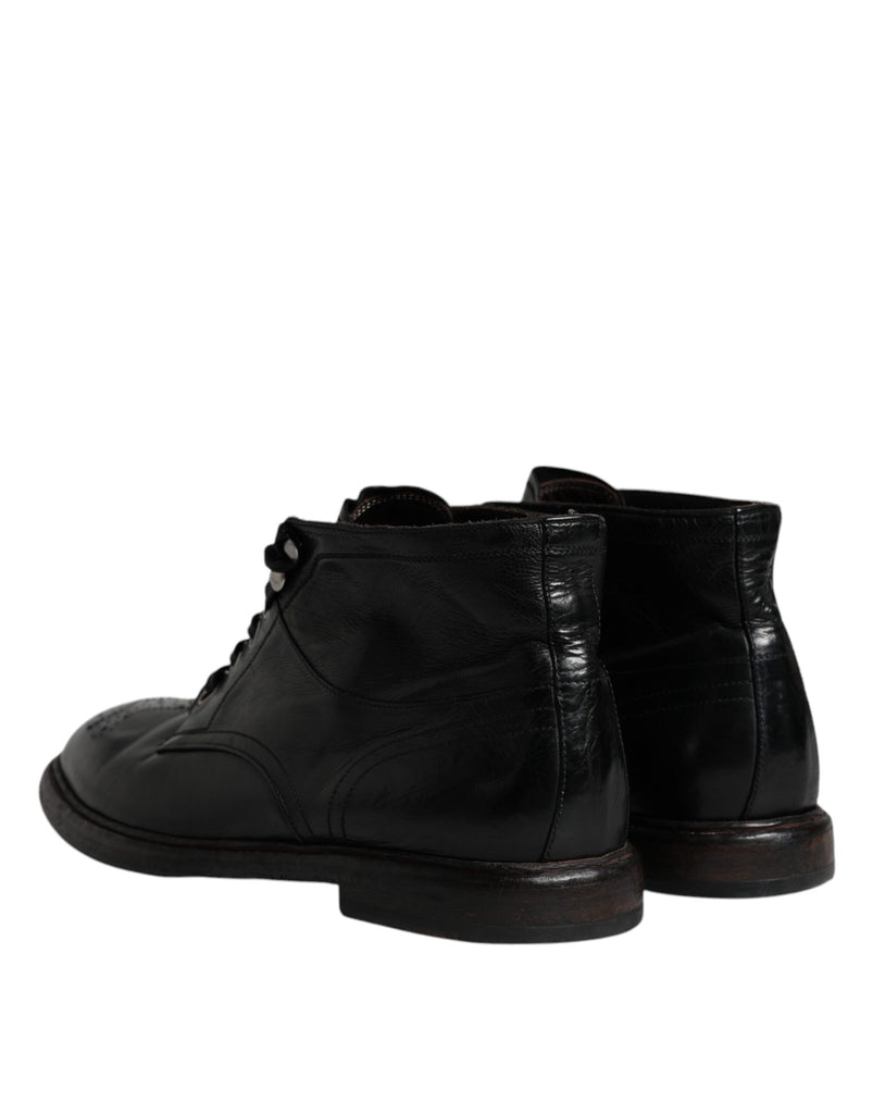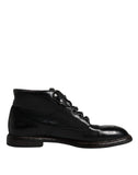 Dolce & Gabbana Black Leather Men Short Boots Lace Up Shoes