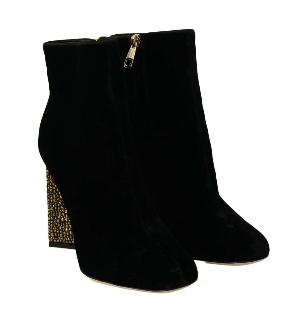• Name : Dolce & Gabbana Black Velvet Crystal Square Heels Shoes