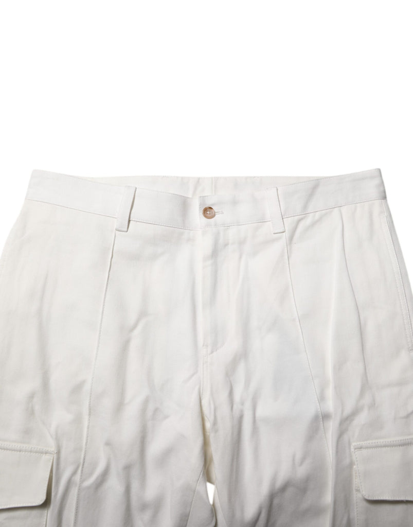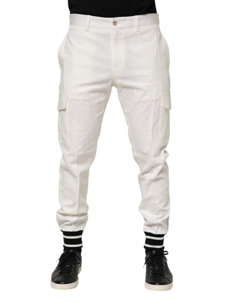 Gorgeous brand new, 100% Authentic DOLCE & GABBANA white cargo jogger pants. These stylish men’s joggers are crafted from premium cotton and designed with a modern skinny fit. Featuring cargo pockets and sleek tailoring, they blend luxury and utility effortlessly—ideal for elevated casual wear.