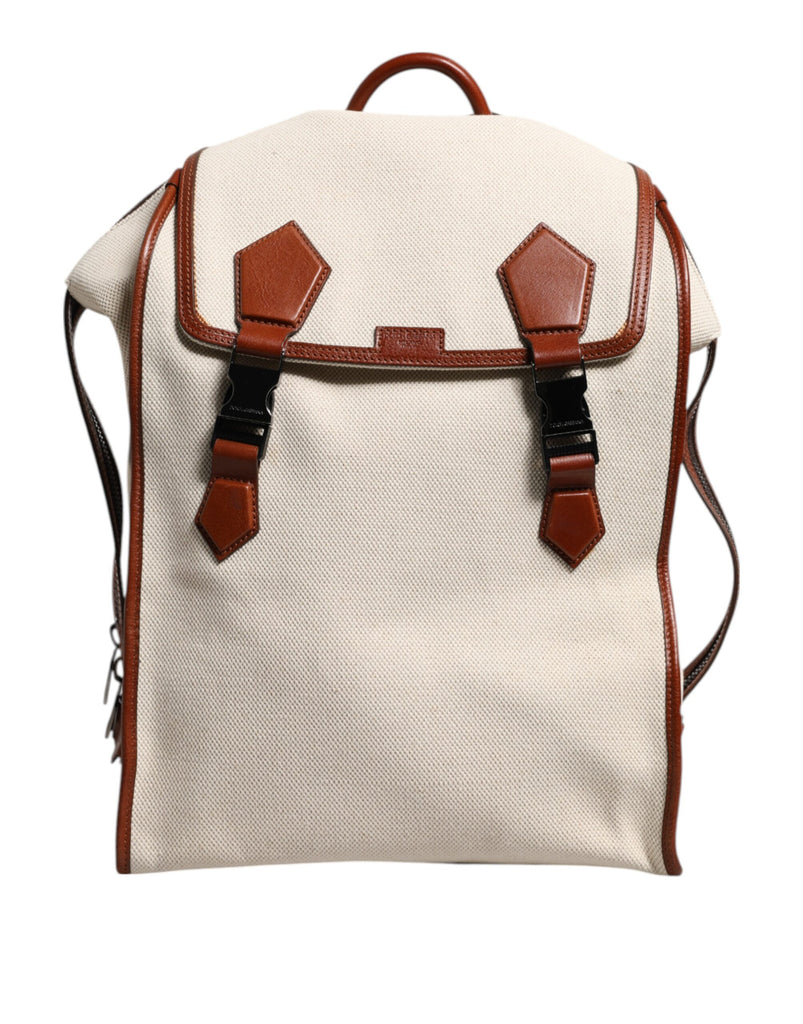 Dolce & Gabbana Beige Brown Canvas Leather EDGE Travel Men Back Pack Bag