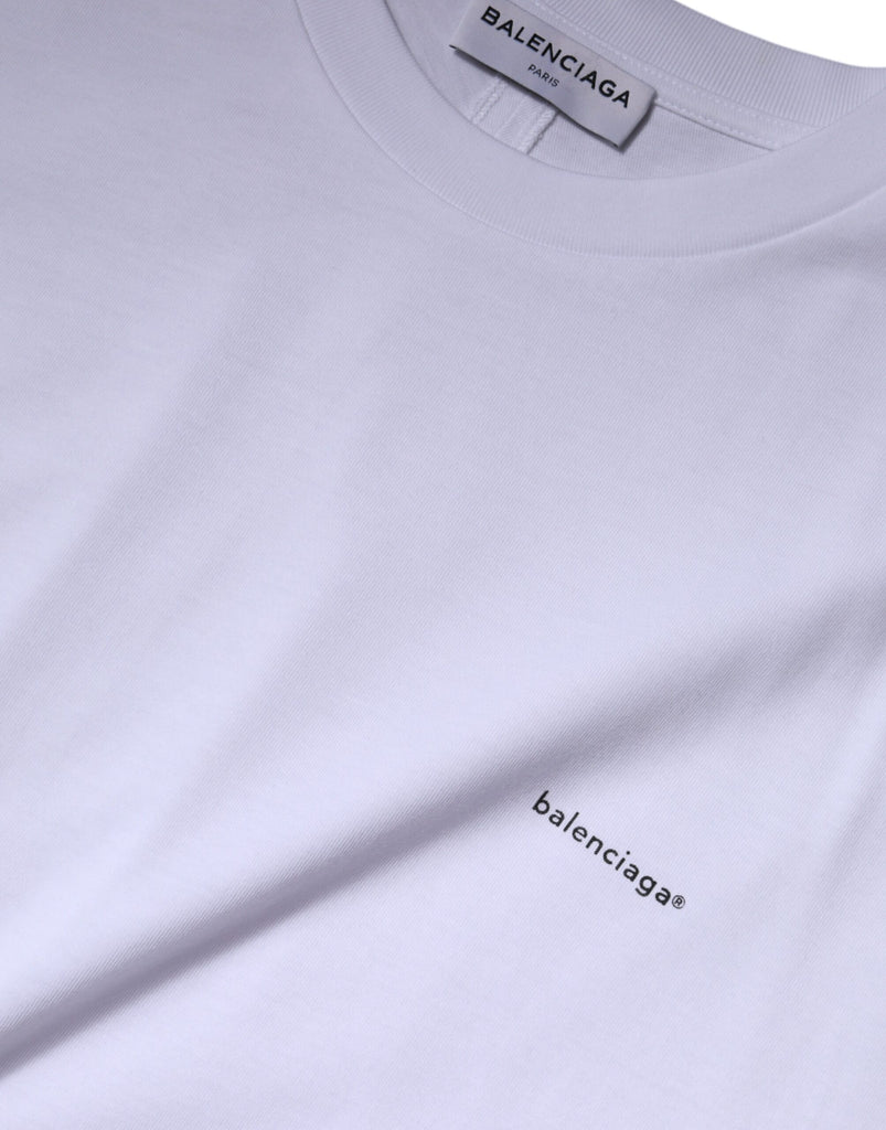 Absolutely stunning, 100% Authentic brand new Balenciaga cotton crew neck t-shirt with logo print. Model: Short sleeves crew neck t-shirt Colour: White Material: 100% Cotton Logo details Made in Italy