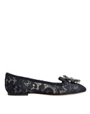 Gorgeous, brand new with tags 100% Authentic Dolce & Gabbana elegant Vally shoes are exquisitely crafted in Italy from the finest Taormina lace. Seen here in dark blue, these pretty floral lace Vally slippers from Dolce & Gabbana will instantly lift your look to new sartorial heights. Featuring an almond toe, a branded leather insole and a wearable flat leather sole, these beauties are finished with a sparkling decorative crystal flower on the front.