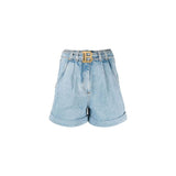 balmain, denim shorts, with balmain buckle, 4-pocket design including two front and two back pockets, zipper closure and bopttons.