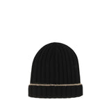 Beanie Hat by Brunello Cucinelli, made of fine cashmere with ribbed knitting. The monochrome design is enriched with contrasting profiles, a refined detail that expresses the discreet elegance of the brand. An essential and sophisticated accessory, ideal for completing winter looks with comfort and style.
