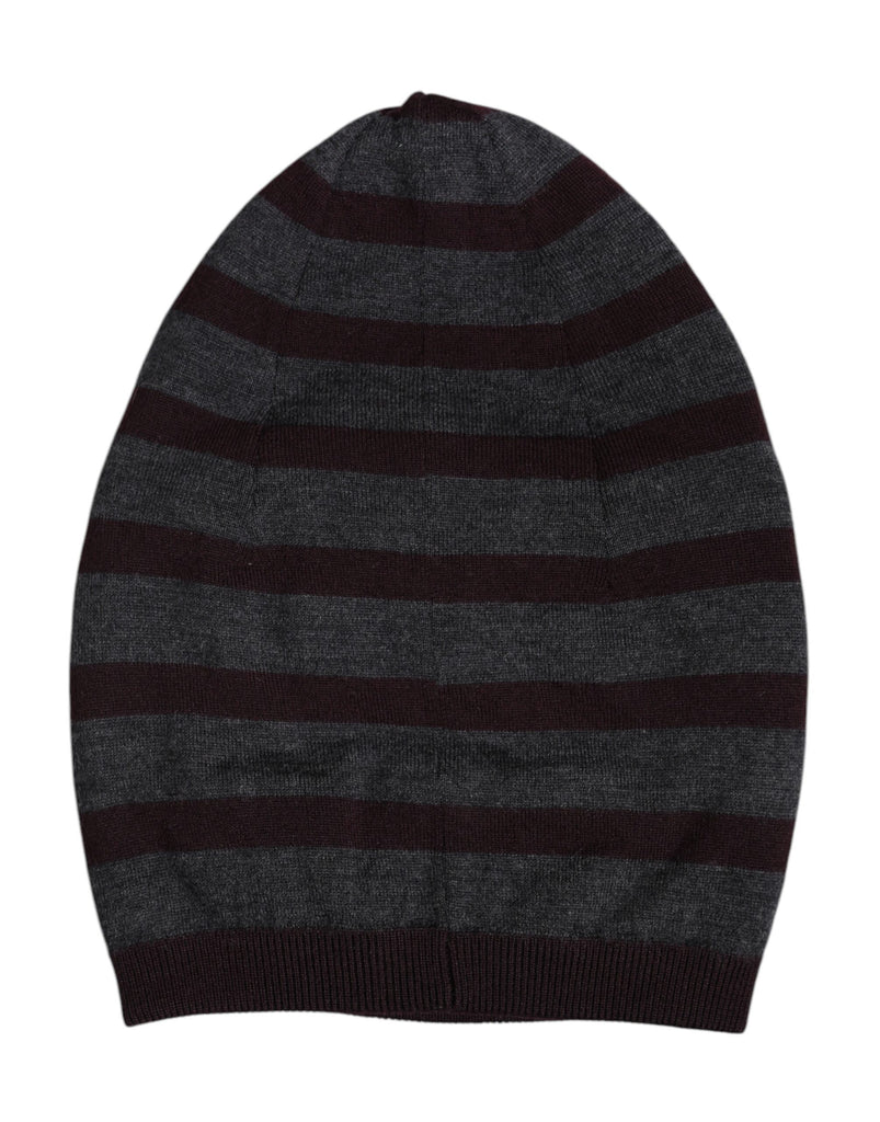 Dolce & Gabbana Gray Striped Wool Knitted Winter Beanie Hat