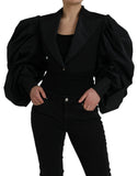 Dolce & Gabbana Black Polyester Puffed Sleeves Cropped Jacket