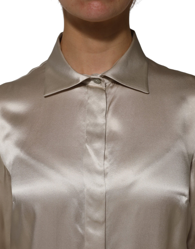 Dolce & Gabbana Beige Satin Silk Collared Long Sleeves Top