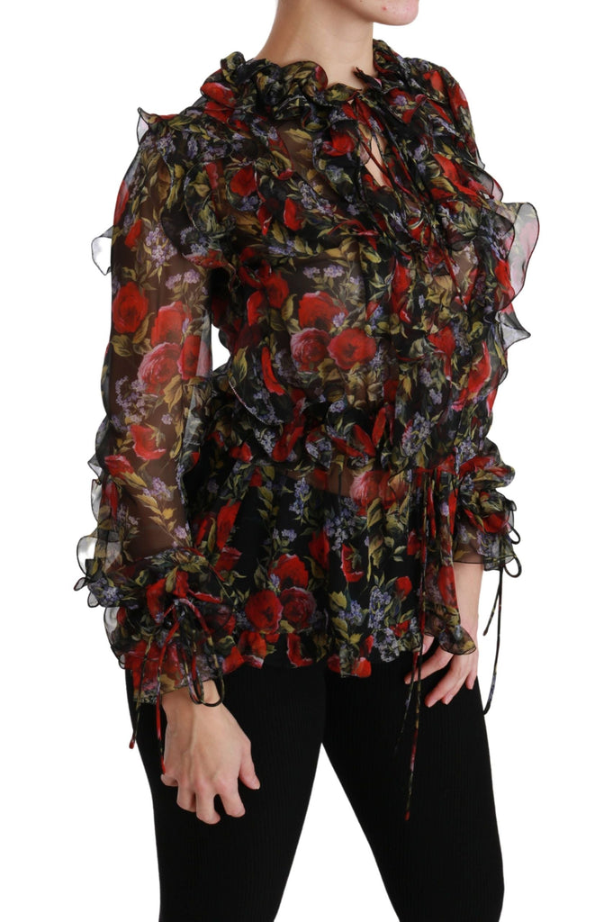 Dolce & Gabbana Black Floral Roses Blouse Silk Top