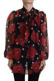 Dolce & Gabbana Black Red Sicily Bag Silk Shirt Top Blouse