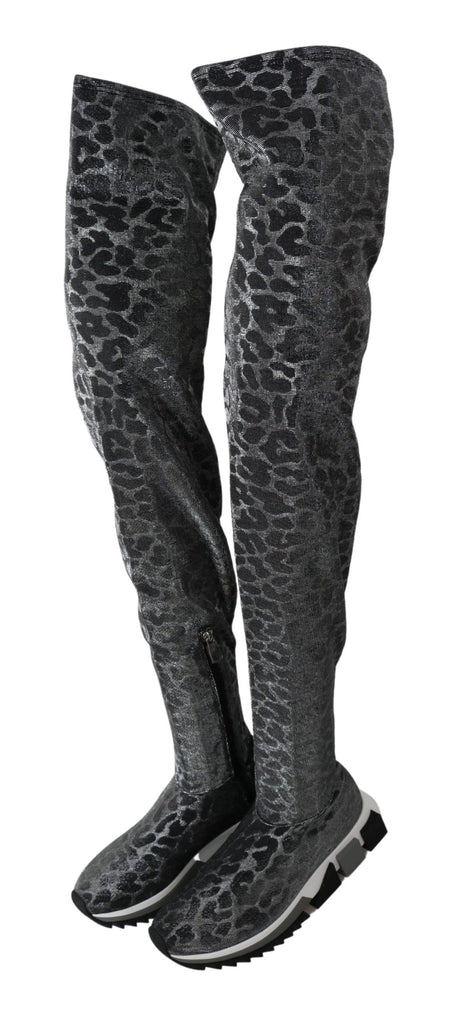 Dolce & Gabbana Gray Leopard High Top Sneakers Booties Shoes