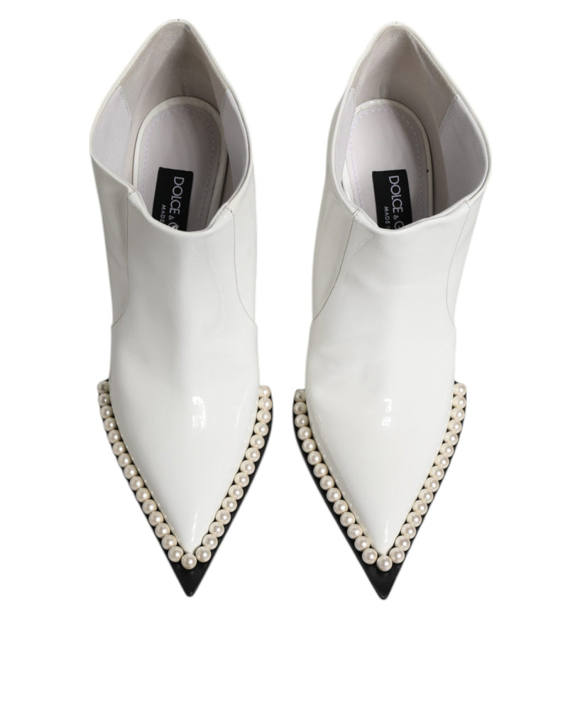 Dolce & Gabbana White Faux Pearl Leather Pointed Toe Ankle Boot Shoes