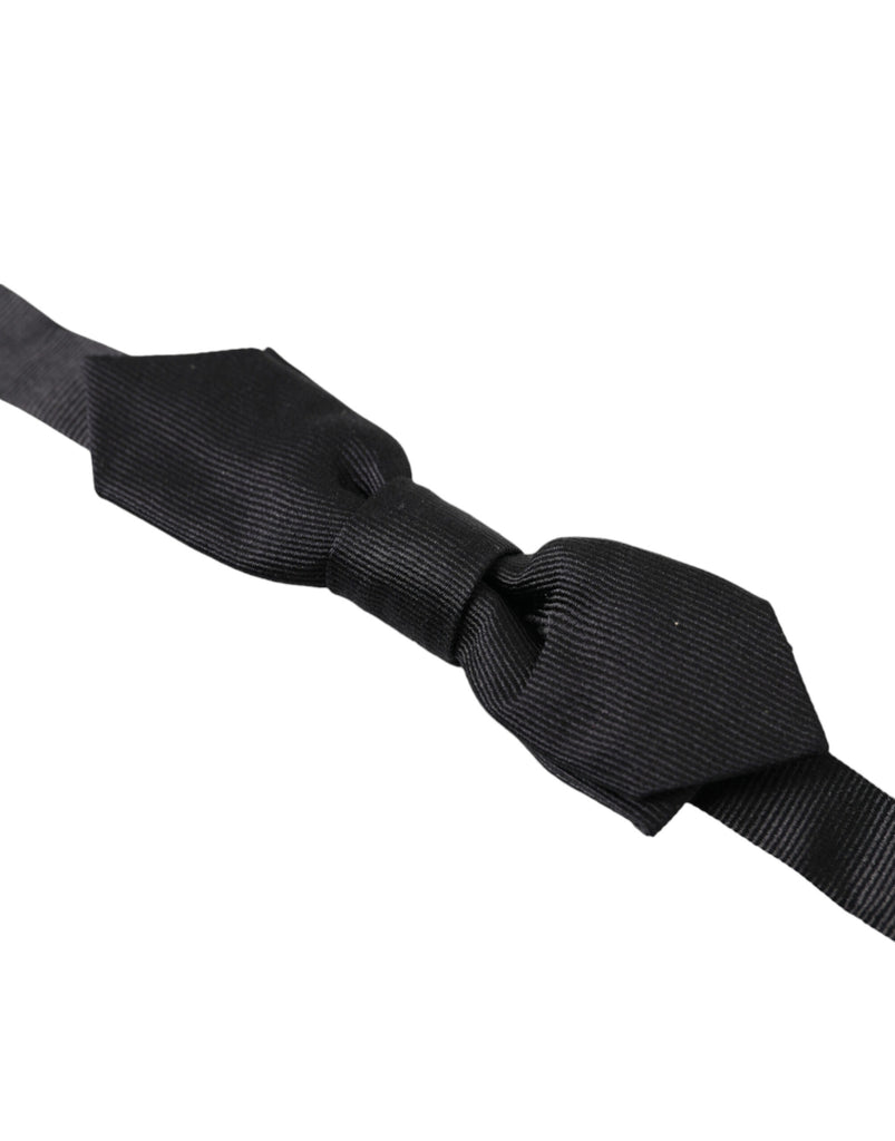 Dolce & Gabbana Black Solid Silk Adjustable Neck Papillon Bow Tie