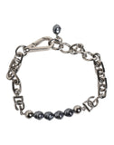 Gorgeous brand new, 100% Authentic Dolce & Gabbana silver-tone chain bracelet. Featuring an intricate mix of polished metal links and signature DG logo details, this statement piece is adorned with lustrous dark-hued pearls for a refined yet modern touch.