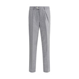 Brunello Cucinelli’s cashmere-silk flannel Pants express relaxed yet sophisticated elegance. Featuring a zipper fly with button, metal hook and counter-button closure, it has front “American” pockets and back welt pockets. Leisure fit offers comfort and style: the crotch and hip are soft, while the leg features tapered volumes for a modern, casual look.