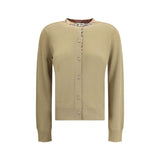Wool Cardigan by Burberry, embellished with refined detailing featuring the iconic Archivio Check pattern on the crew neck. The design features a front button closure, ribbed cuffs and hem ensuring a comfortable and structured fit. A timeless garment that combines British tradition and contemporary style.