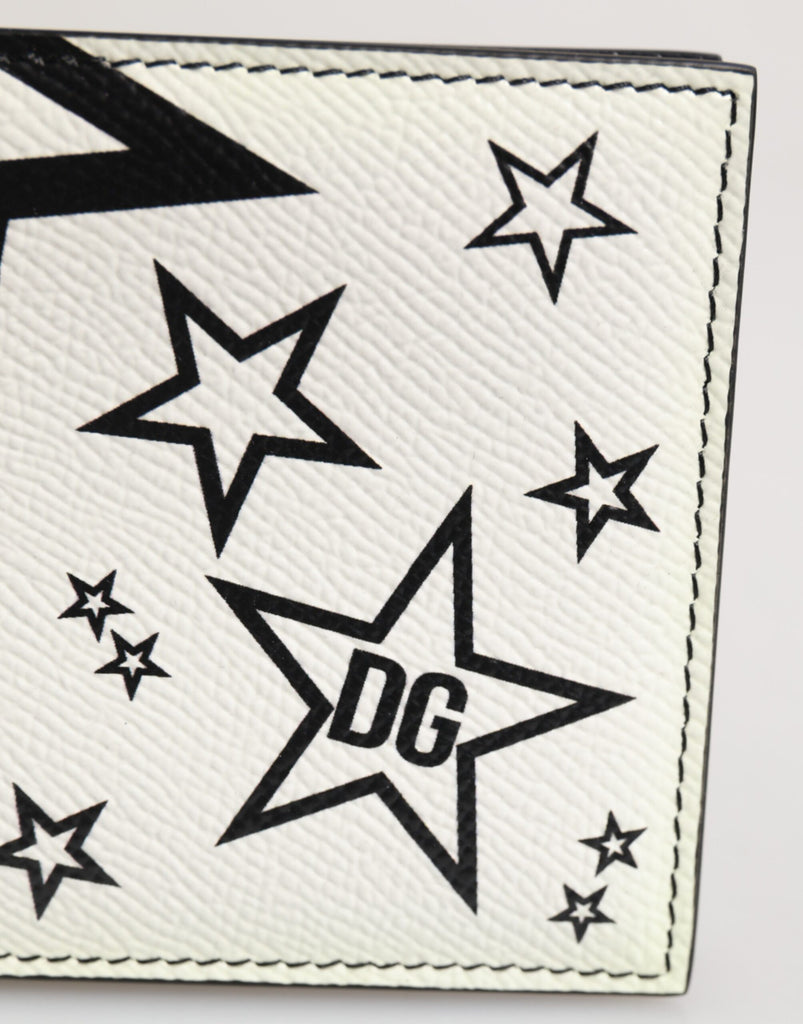 Dolce & Gabbana White Leather DG Star Logo Bifold Card Holder Wallet