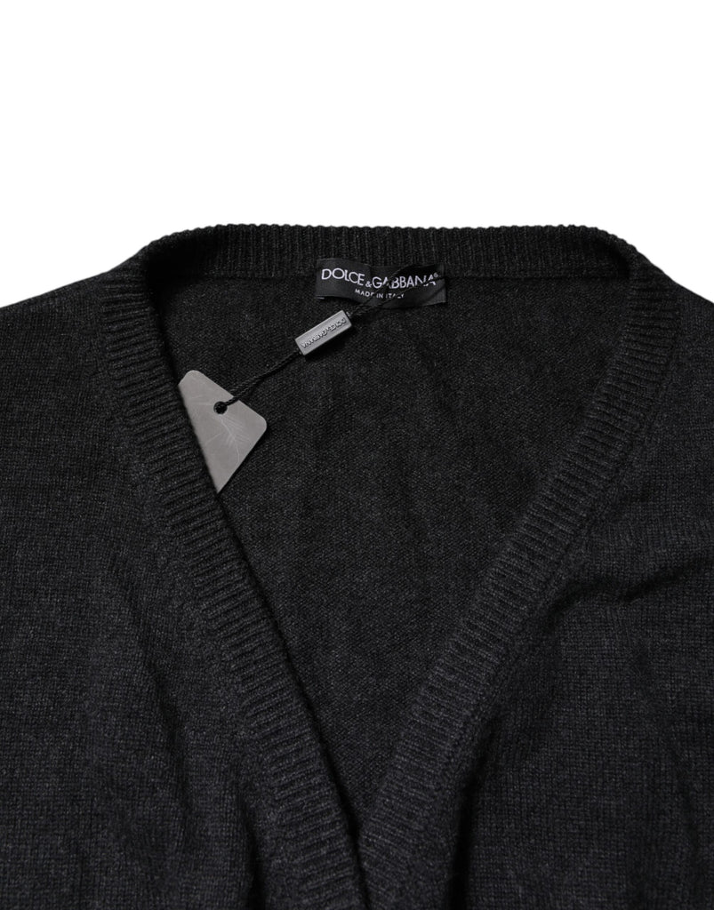 Dolce & Gabbana Grey Cashmere Deep V-neck Pullover Sweater