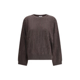 Brunello Cucinelli’s sequined Sweater is an elegant and feminine garment enriched with bright details. Made with a ribbed crew neck, hem and cuffs, it features a vertical striped pattern obtained through the application of delicate sequins, which give the design a sophisticated shine. Perfect for adding a touch of light to everyday or evening looks with the unmistakable style of the fashion house.