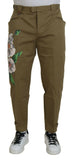 Dolce & Gabbana Beige Cotton Stretch Floral Chinos Pants