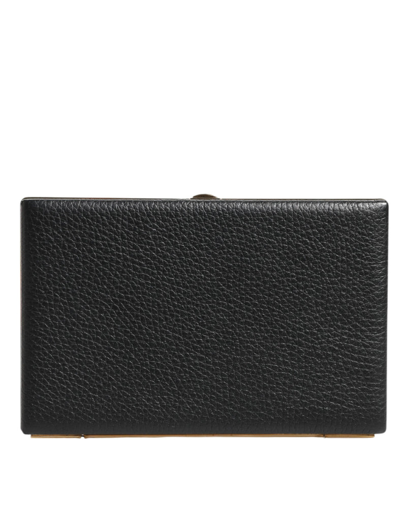 Dolce & Gabbana Black Leather Gold Frame Clutch Evening Party Purse Bag