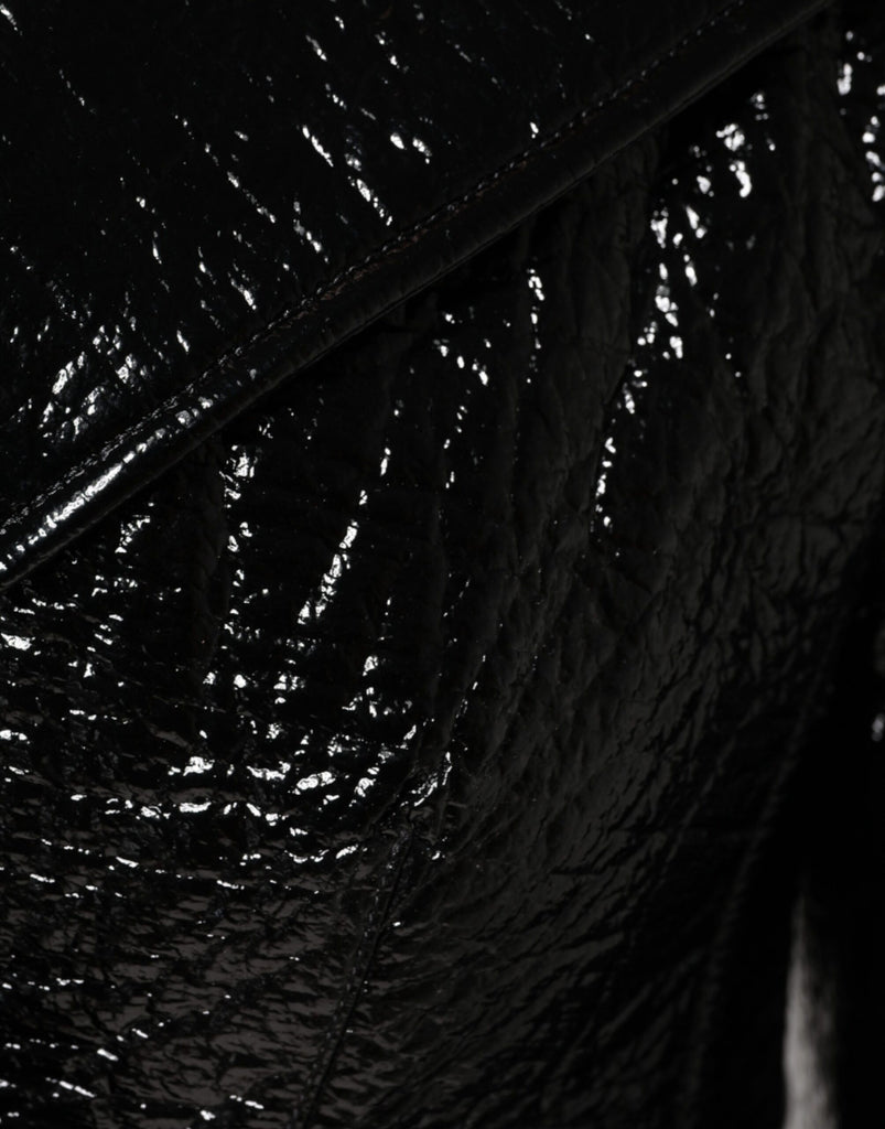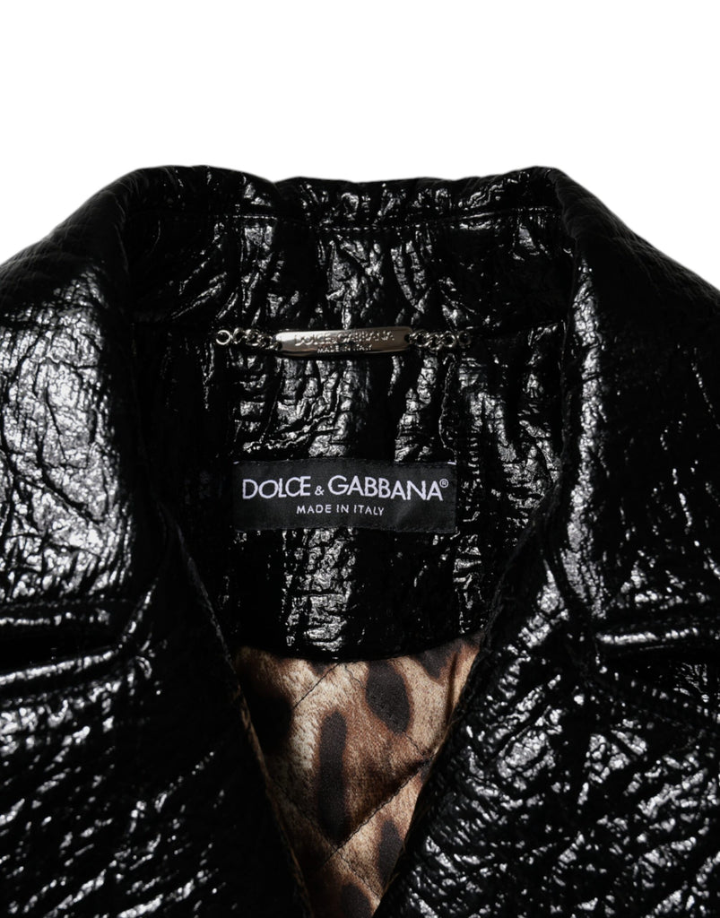 • Name : Dolce & Gabbana Black Leather Cropped Long Sleeve Coat Jacket