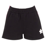 Comme Des Fuckdown cotton shorts with front logo print and fuchsia side bands, two side pockets