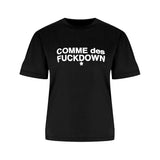 Indulge in the audacious spirit of Comme Des Fuckdown with this jersey t-shirt, a bold statement piece that effortlessly captures the essence of the streets. Adorned with the iconic logo print, this top is a sartorial staple for those who dare to defy the norm. Crafted from soft cotton for unparalleled comfort, it’s a rebellious twist on everyday casual wear, designed to stand out in any wardrobe.