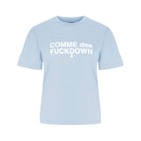 Elevate your streetwear collection with Comme Des Fuckdown’s audacious attitude encapsulated in a t-shirt that’s as bold as it is trendy. Crafted for the daring fashionista, this blue jersey tee brandishes the brand’s iconic logo print at the forefront, making a statement without uttering a single word. Perfect for those who walk the edge of fashion with confidence and flair.