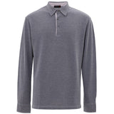 Corneliani Blue Long-Sleeve Polo in Cotton Featuring a bicolor collar in light blue and blue with a classic cut and 3-button closure. The model is 183 cm tall and wears a size 50. Made in Italy