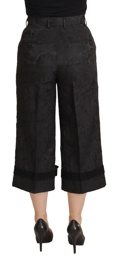 Dolce & Gabbana Black Brocade Cropped High Waist Pants