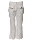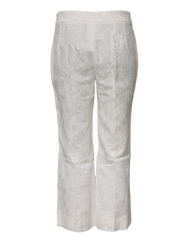Gorgeous brand new, 100% Authentic Dolce & Gabbana mid waisted floral jacquard pants. Model: Cropped flared pants Fit: Regular Color: White Material: 65% Cotton 26% Viscose 9% Elastane Zipper closure Logo details Made in Italy Very exclusive and high craftsmanship