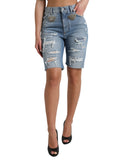 Gorgeous brand new with tags, 100% Authentic Dolce & Gabbana high waist embellished bermuda denim shorts.