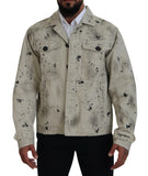 Model: Denim jacket Color: Off white with black color splash print Full button closure Logo details Material: 100% Cotton