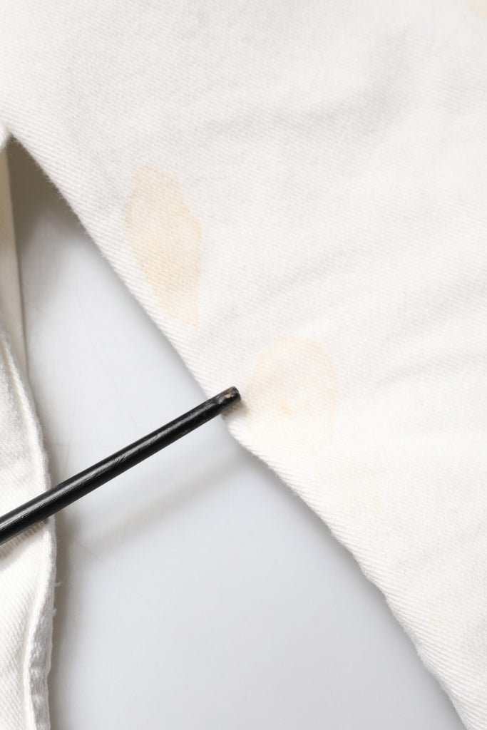 This item has a minor defect, there are stains on the front and back side (see pictures for details).