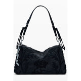 Make a bold statement with the Desigual Romeo Floral Bergamo Bag, where functionality meets artistry. Adorned with vibrant contrasting details and meticulous embroidery, this piece is not just a bag—it’s a conversation starter. Swing it over your shoulder with the adjustable strap or grasp it by the chic removable handle. With its secure zip closure and functional internal pocket, this Desigual treasure fuses practicality with the label’s renowned avant-garde style.