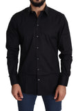 Dolce & Gabbana Black Cotton Stretch Formal GOLD Dress Shirt