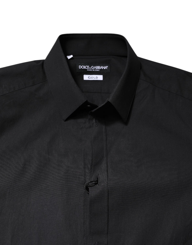 Dolce & Gabbana Black GOLD Cotton Dress Formal Shirt