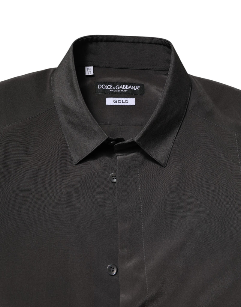 Dolce & Gabbana Dark Gray Silk GOLD Dress Formal Shirt