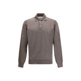 Brunello Cucinelli’s virgin wool Polo shirt is an elegant and refined piece featuring a classic ribbed collar that lends an understated touch. Tone-on-tone front buttons add a discreet yet distinctive detail, while the long-sleeved design and ribbed cuffs complete the look with a curated finish. The regular fit makes it versatile and comfortable, perfect for wearing in both casual and more formal settings. A great choice for a sophisticated outfit, but with an air of comfort and modernity.