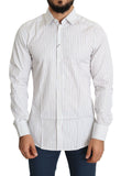 Absolutely stunning, 100% Authentic, brand new with tags Dolce & Gabbana MARTINI white striped dress shirt made of fine soft cotton. Features a spread collar and one-button barrel cuffs.