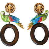 Dolce & Gabbana Multicolor Parrot Wood Brass Crystal Embellished Earrings