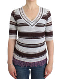 Gorgeous brand new with tags, 100% Authentic Ermanno Scervino striped V-Neck Knit top with lace hem. Material: Rayon blend Color: Multicolor Model: V-neck Logo details