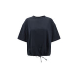 Fabiana Filippi’s T-shirt is an elegant and versatile garment with a classic crew neck that makes it a great base for a variety of looks. The silk detail on the bottom, adjustable with a drawstring, adds a touch of sophistication and the possibility to customize the fit. This T-shirt combines comfort and style, perfect for a casual yet sophisticated outfit, and ideal to pair with jeans or dressy pants for a chic, contemporary look.