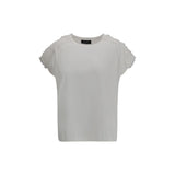 Fabiana Filippi’s T-Shirt revisits a classic with elegance and lightness. The crew-neck model is embellished with delicate tulle appliqués on the sleeves, giving a feminine and sophisticated touch to the essential design.
