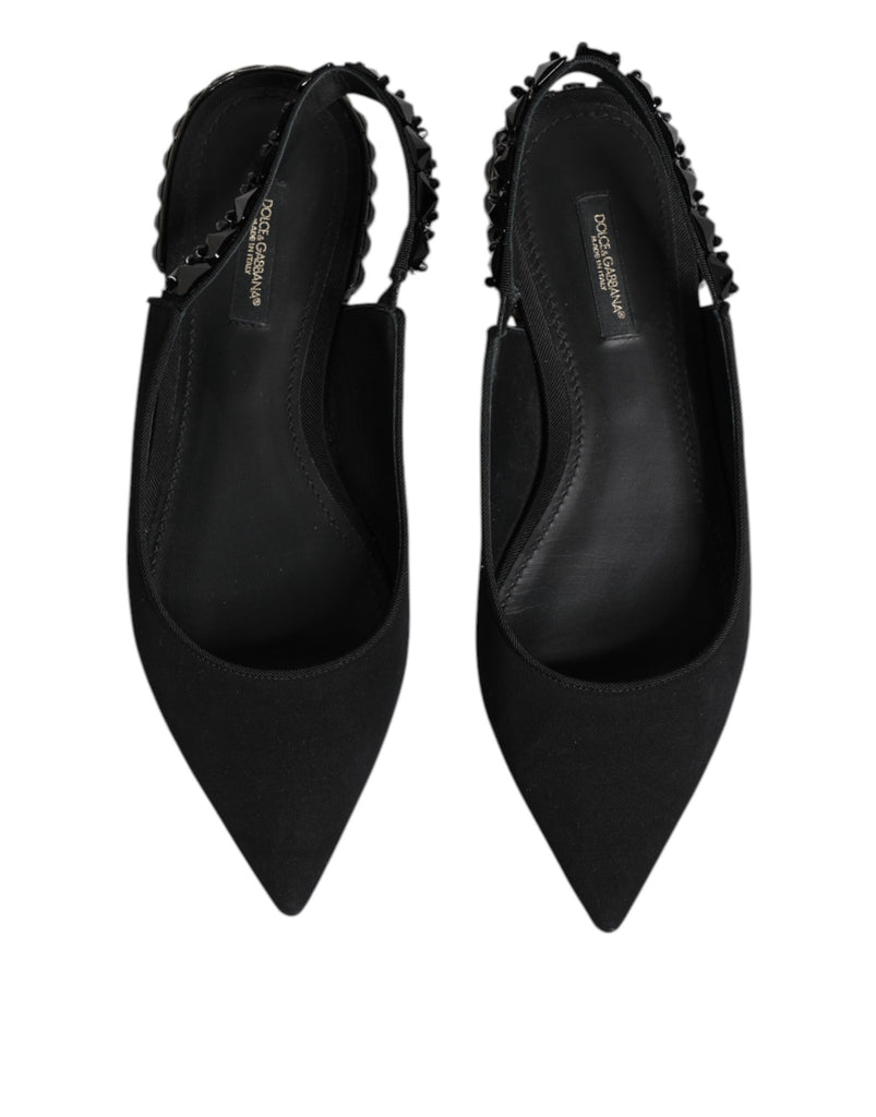 Gorgeous preowned, 100% Authentic Dolce & Gabbana Charmeuse slingback flats featuring studs at ankle strap and heel.