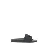 The Valentino Garavani rubber Slides combine comfort and iconic style. Featuring a round toe and a band with the emblematic embossed VLogo, they are perfect for completing casual or vacation looks. The flat sole ensures practicality and lightness, ideal for wearing in the city, at the beach or by the pool.