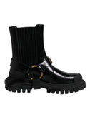 Dolce & Gabbana Black Leather Slip On Stretch Trekking Boots Shoes